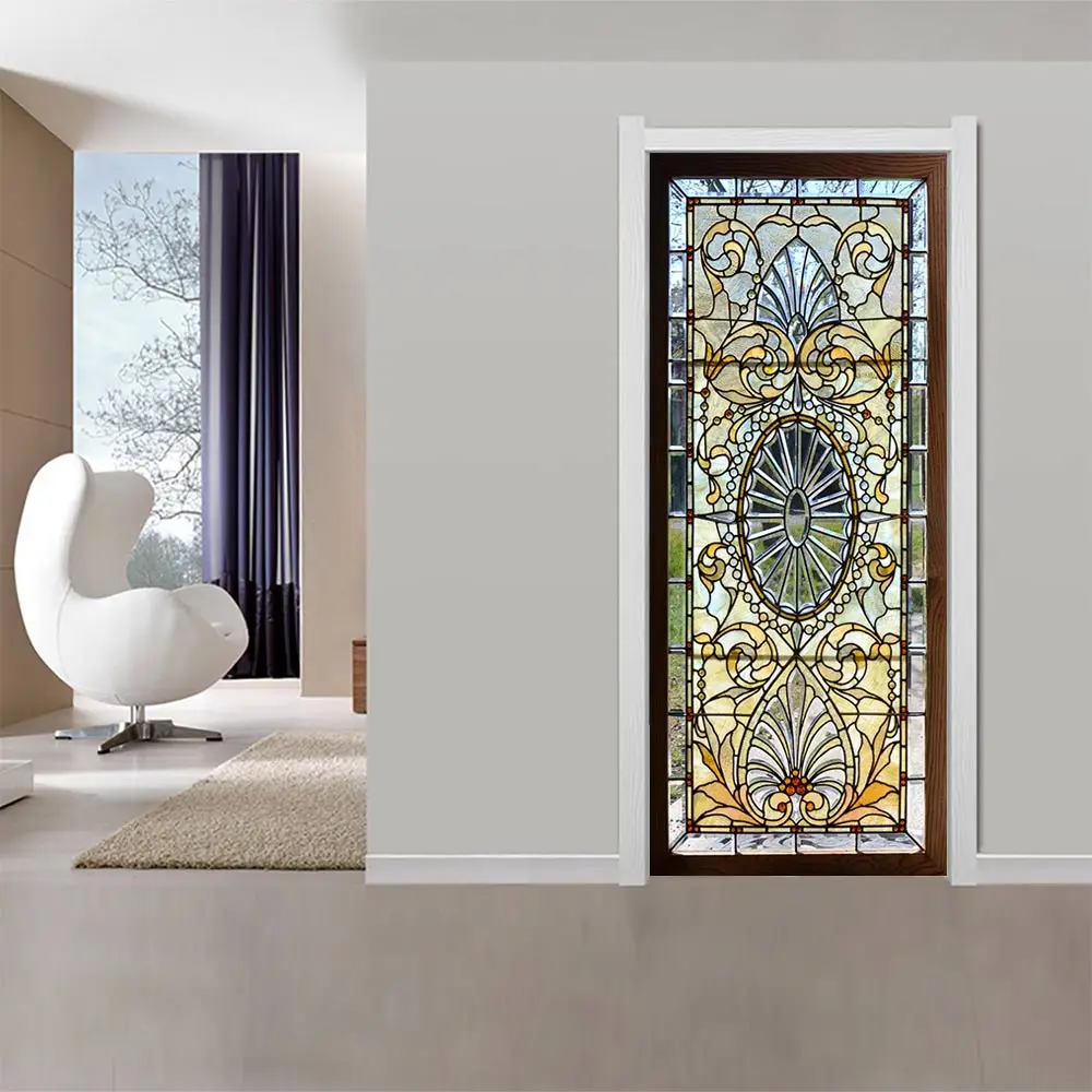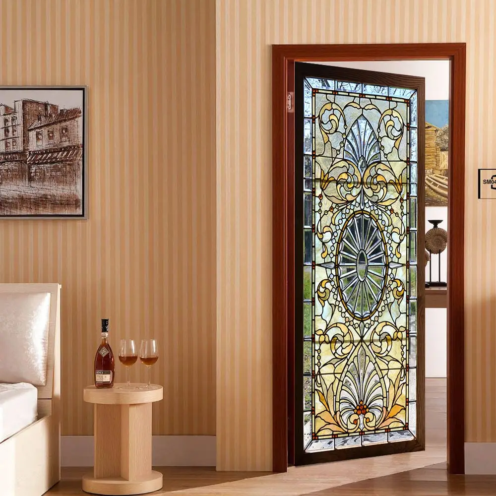 3D Retro Patter Door Sticker Bedroom Adhesive Waterproof Mural Decal Home Decor Door Wallpaper