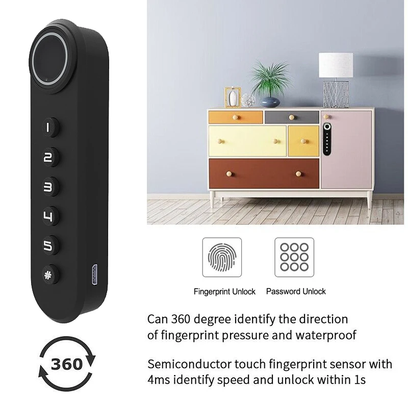 BEST Waterproof Smart Finger Print Door Lock Semiconductor Keyless Fingerprint Password Drawer Office Ca