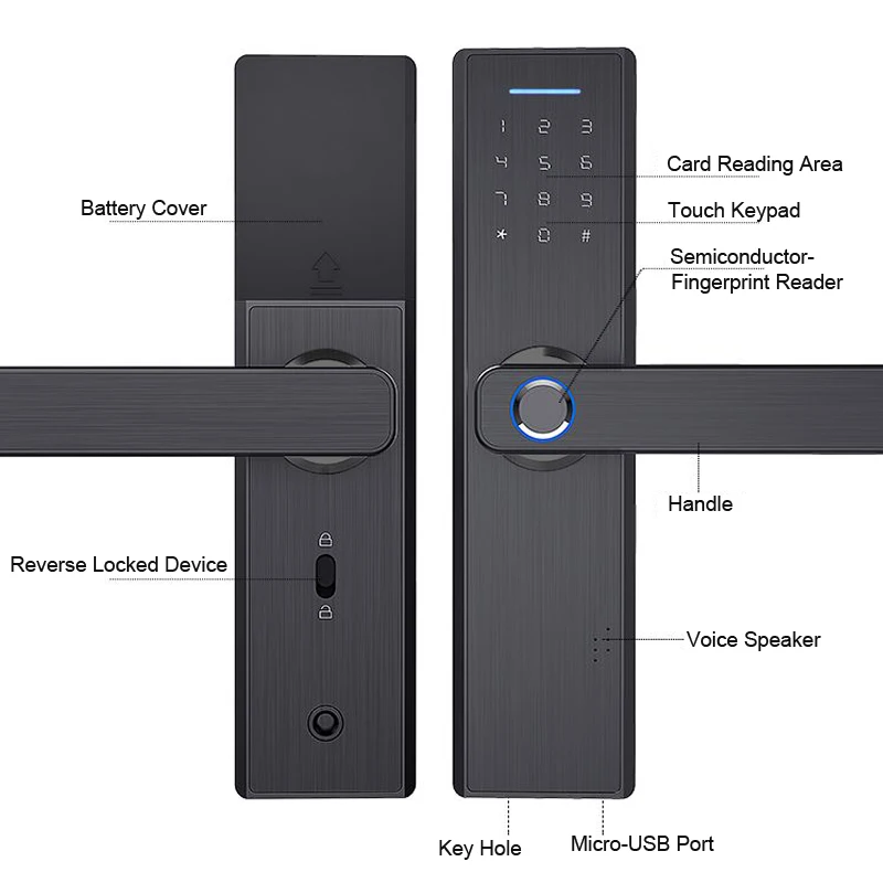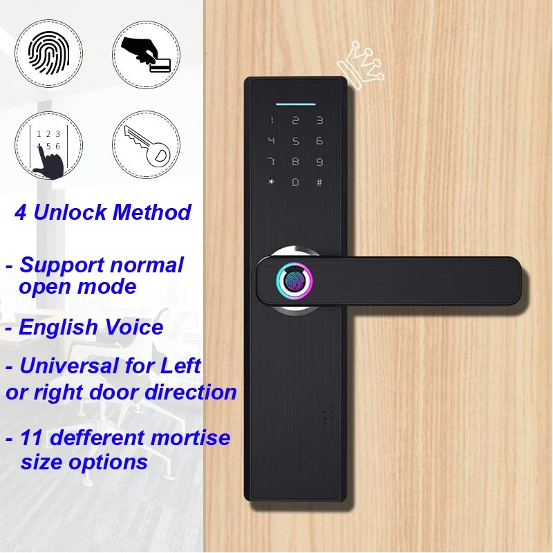 Fingerprint Lock Smart Card Digital Code Electronic Door Lock Home Security Mortise Lock Wire Drawi
